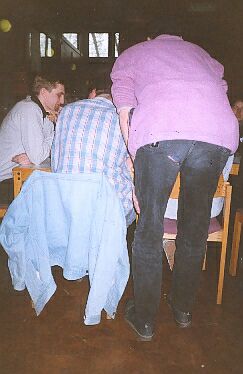 - fergus-s16-15.jpg Klassische Rollenspielrunde: Berge von Regelbüchern und bunten, vieleckigen Wurfgeschossen, Gruppengrösse von 10+, alle 10 Minuten flucht jemand, weil er schon wieder einen neuen Charakter AUSWÜRFELN muss...
