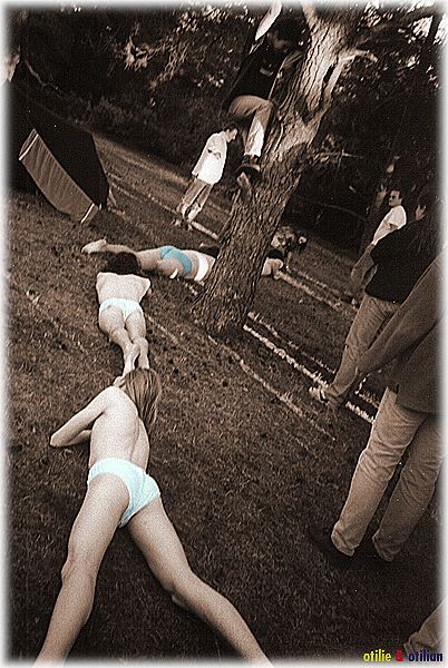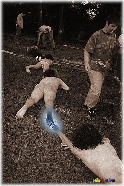 Schnitzeljagd: Apollo (bekleidet), Nadomir, Janni (verdeckt),